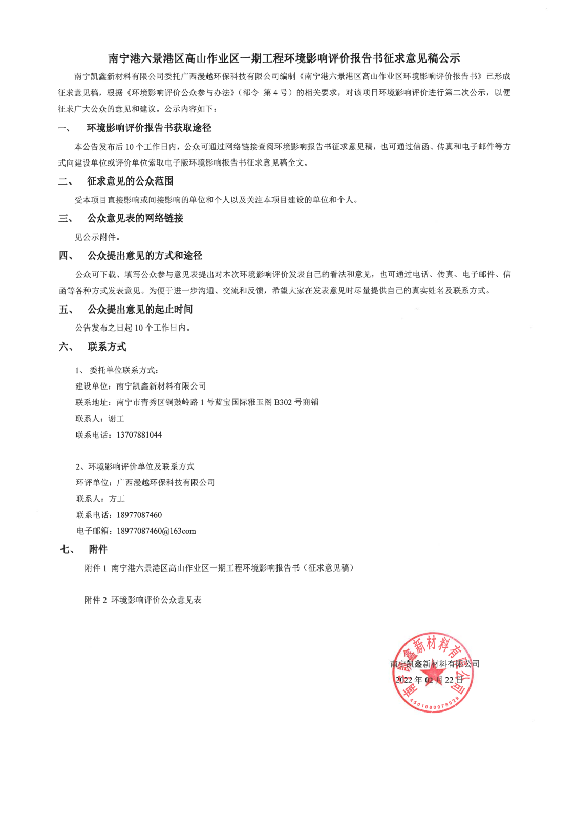 南寧港六景港區(qū)高山作業(yè)區(qū)一期工程環(huán)境影響評價(jià)報(bào)告書征求意見稿公示