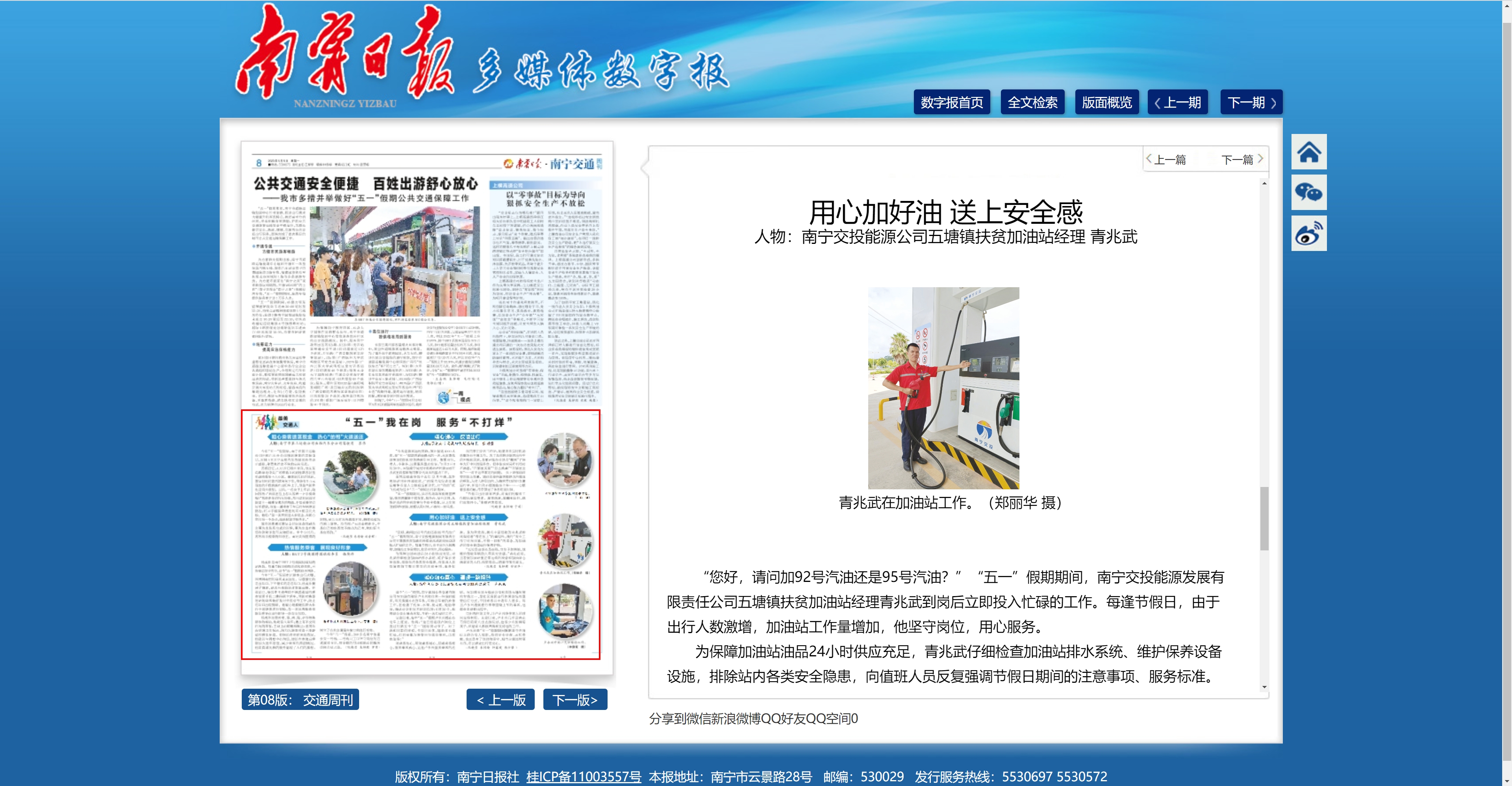 “五一”我在崗 服務“不打烊” 用心加好油 送上安全感 人物:南寧交投能源公司五塘鎮(zhèn)扶貧加油站經理 青兆武