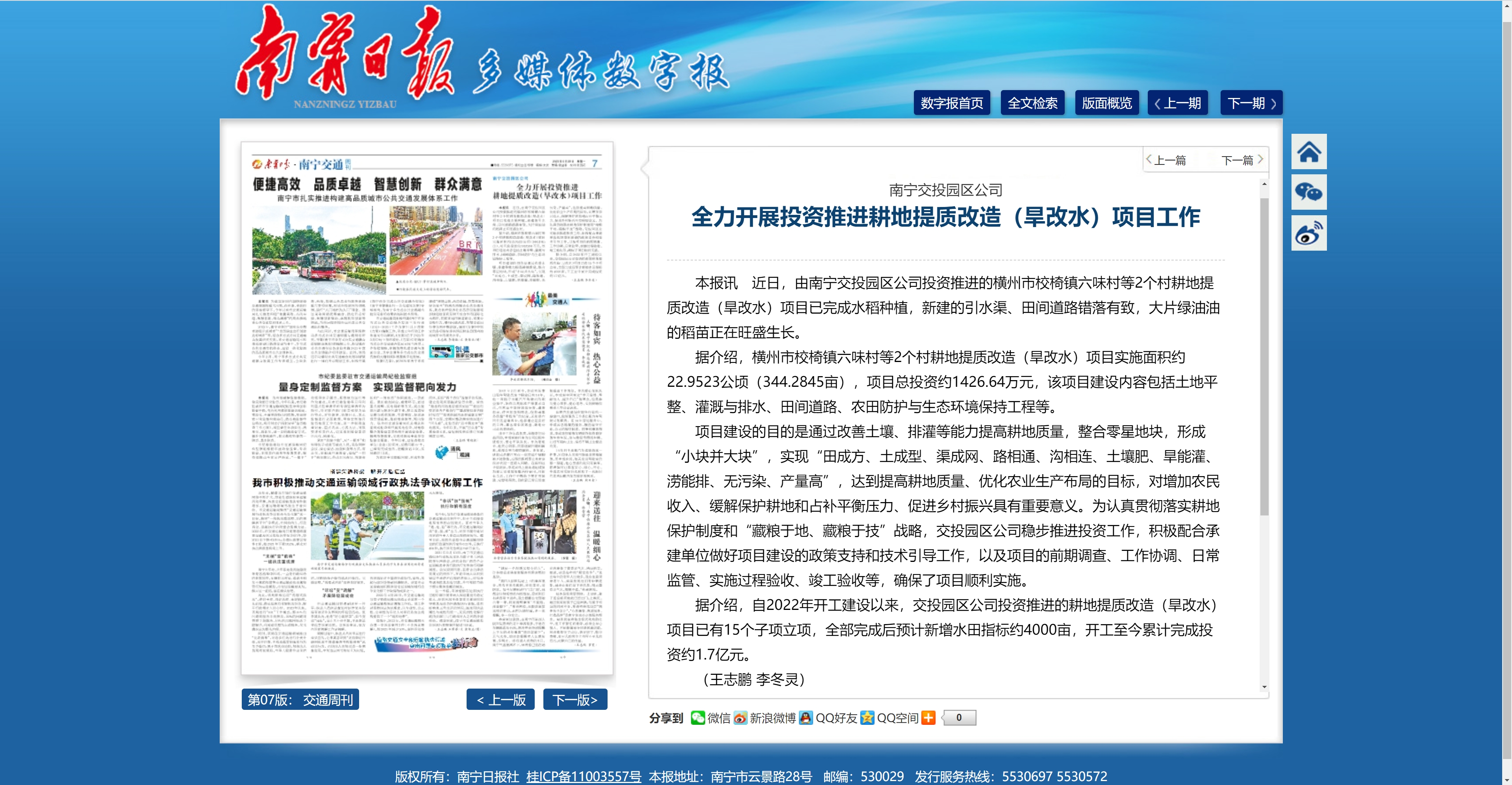 南寧交投 全力開展投資推進耕地提質改造(旱改水)項目工作