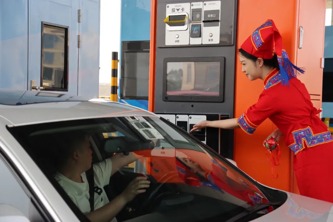 在上橫收費總站,當(dāng)班人員身穿特色民族服裝,化身“阿哥”“阿妹”,以嶄新靚麗形象迎接廣大司乘,以傾心的微笑開展文明服務(wù),將民族特色與收費窗口服務(wù)相融合,成為高速路上一道靚麗風(fēng)景線。