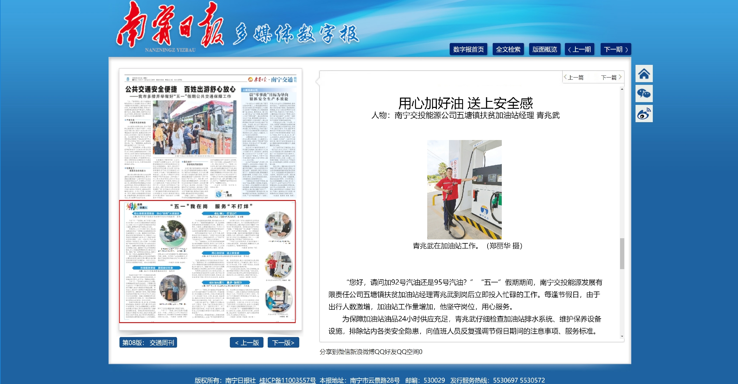 “五一”我在崗 服務“不打烊” 用心加好油 送上安全感 人物:南寧交投能源公司五塘鎮(zhèn)扶貧加油站經理 青兆武