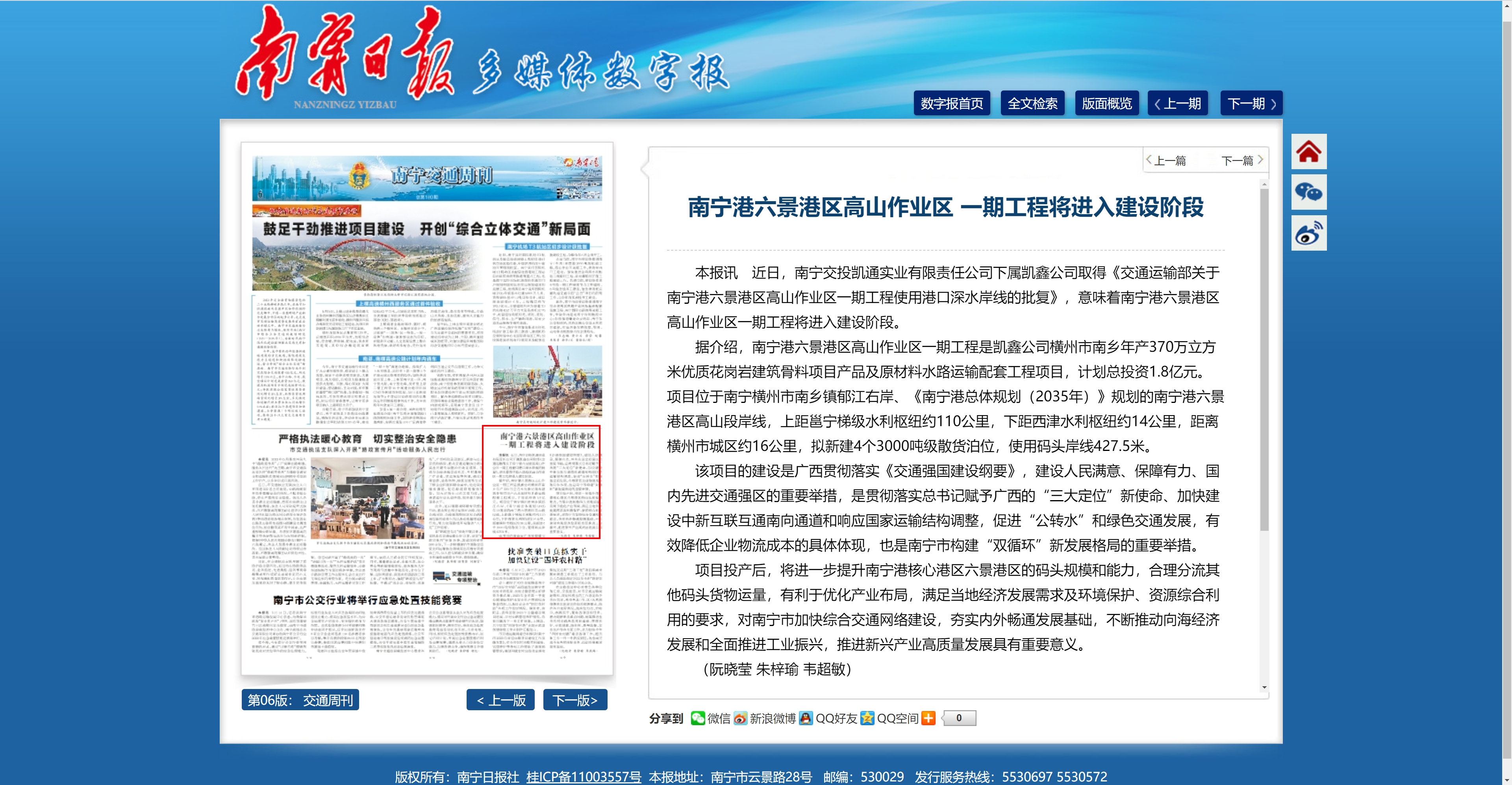 南寧港六景港區(qū)高山作業(yè)區(qū)一期工程將進入建設階段