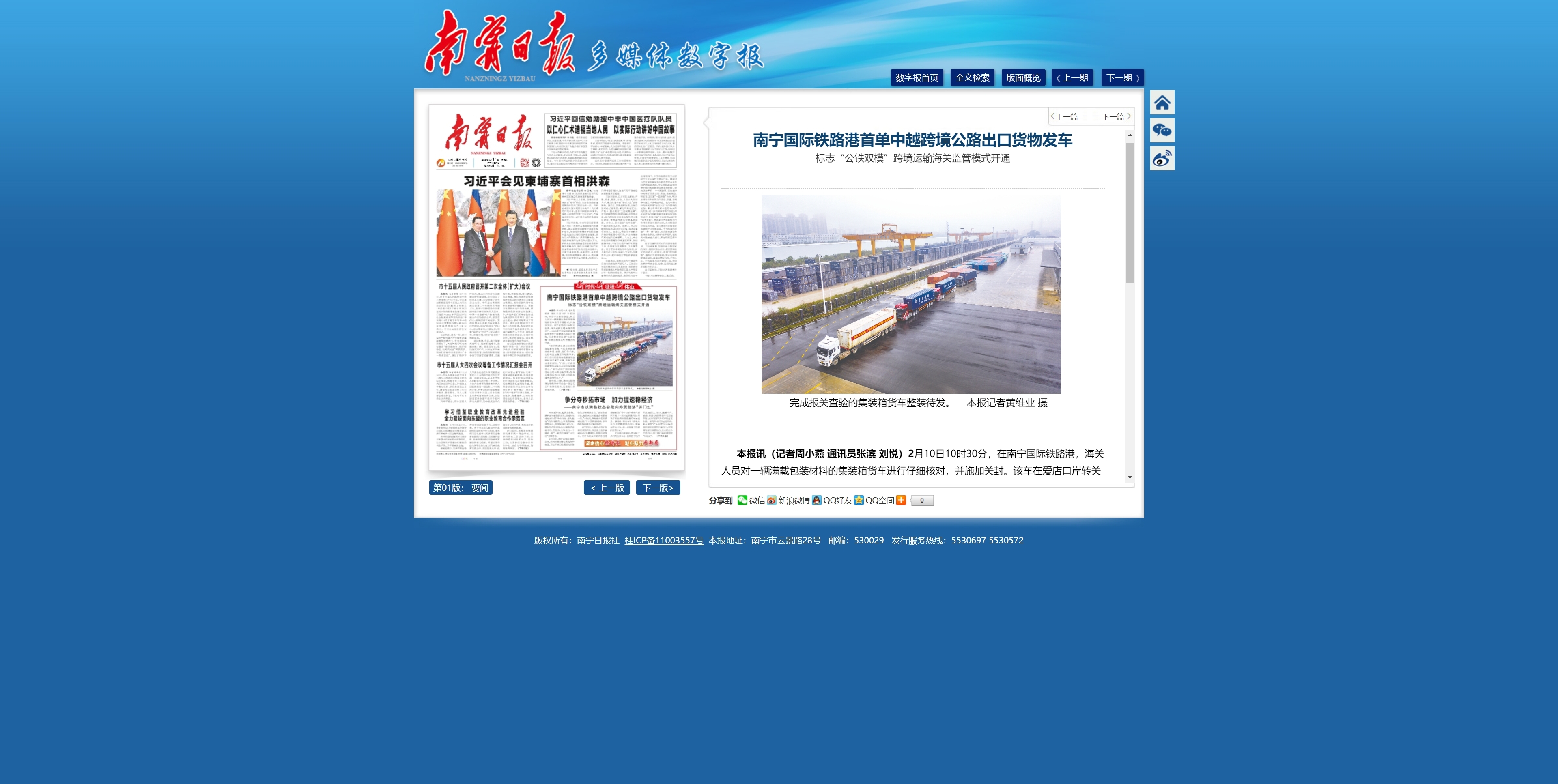 南寧國際鐵路港首單中越跨境公路出口貨物發(fā)車 標(biāo)志“公鐵雙?!笨缇尺\輸海關(guān)監(jiān)管模式開通